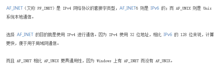 AF_INET 是IPv4网络协议的套接字类型