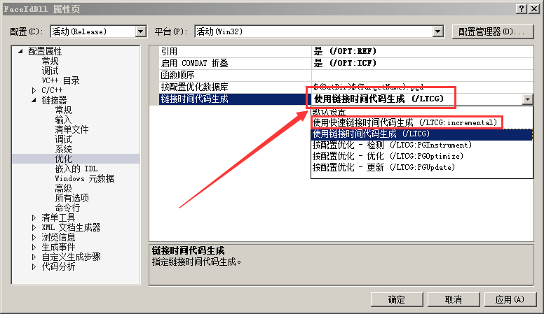 使用快速链接时间代码生成 (/LTCG:incremental)